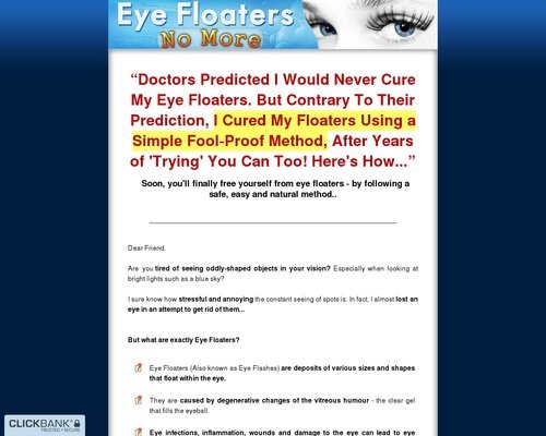 Click here to get Eye Floaters No More – Get Rid of Eye Floaters Easily, Naturally and Forever at discounted price while it’s still available…