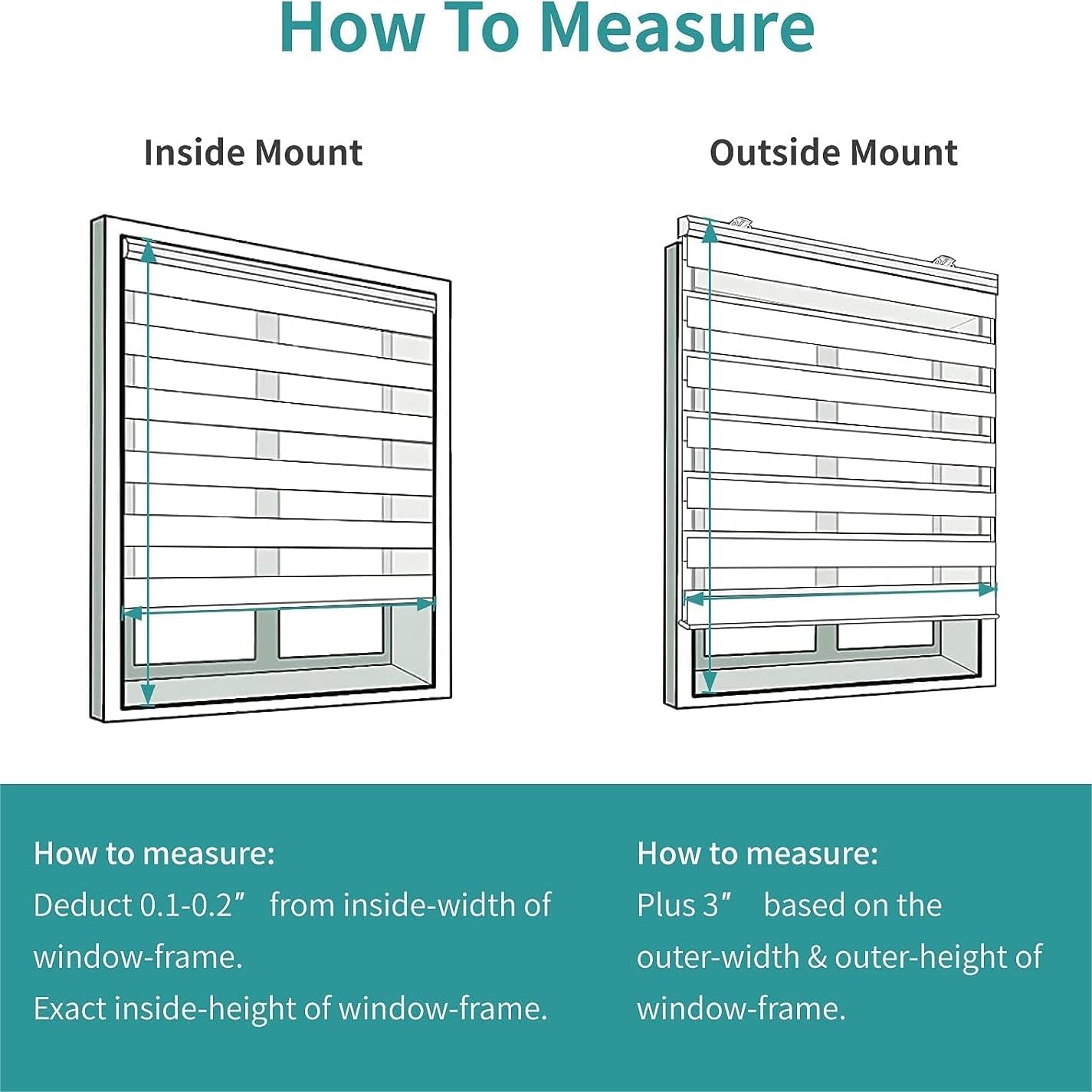 【How to choose a correct size】Example your window meas 35″W x 72″H:①INSIDE MOUNT: Window Width deduct 0.1″ is Blind width. Blind Width≤35″-0.1=34.9″; Blind Height≥72″. ②OUTSIDE MOUNT: Plus at least 3″ is blind width, Blind Width≥35″+3″=38″; Blind Height≥72+3=75″.【Pls Note】Fabric width will be 1″ narrower than the size of the blind.