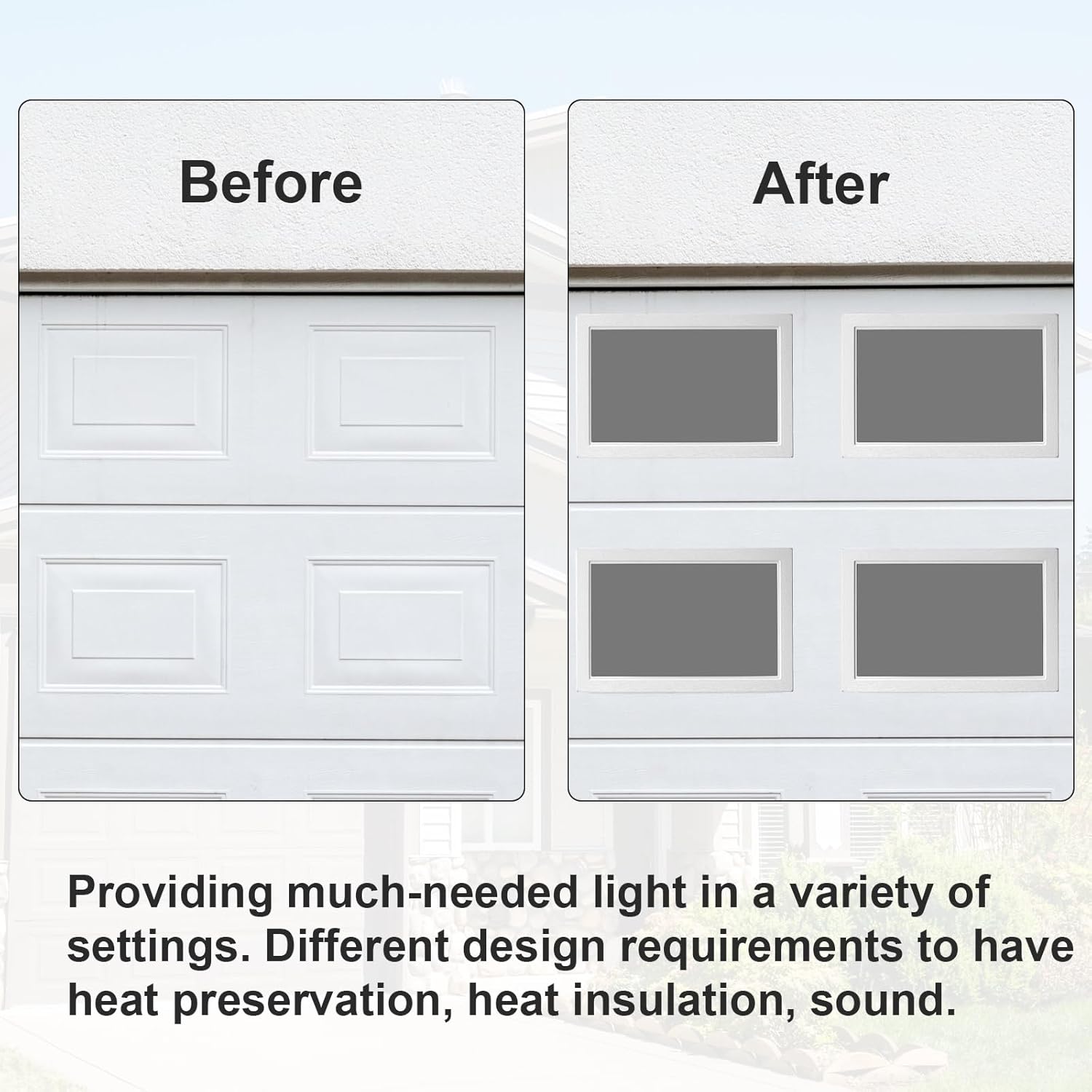 Superior Quality – Our garage door windows inserts feature frames made of thickened vinyl material, paired with acrylic glass panels that offer higher light transmission than regular glass, yet are lighter and more durable. Additionally, they boast better weather resistance and chemical stability, resisting aging and yellowing.